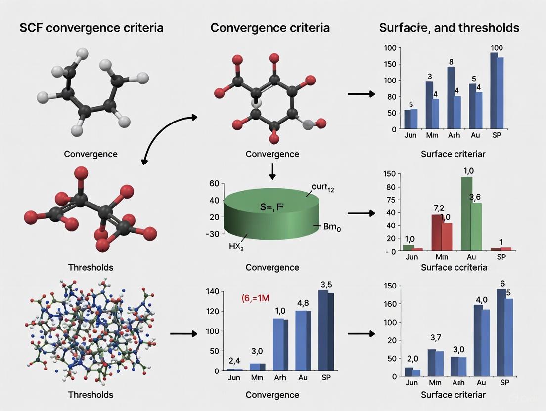 Mastering SCF convergence criteria and thresholds is essential for obtaining reliable, reproducible results in computational chemistry applications for drug development and biomedical research. This comprehensive guide has synthesized key principles from fundamental concepts through advanced troubleshooting, emphasizing that successful convergence requires both theoretical understanding and practical implementation across different software platforms. Researchers must select appropriate convergence criteria matched to their scientific objectives, implement systematic troubleshooting when challenges arise, and validate results through stability analysis. As computational methods continue to advance in pharmaceutical research, robust SCF convergence practices will remain fundamental to accurate property prediction, reaction modeling, and materials design. Future directions include automated convergence workflows, machine learning-enhanced initial guesses, and improved algorithms specifically designed for challenging biological systems, promising more efficient and accessible high-accuracy calculations for the entire research community.