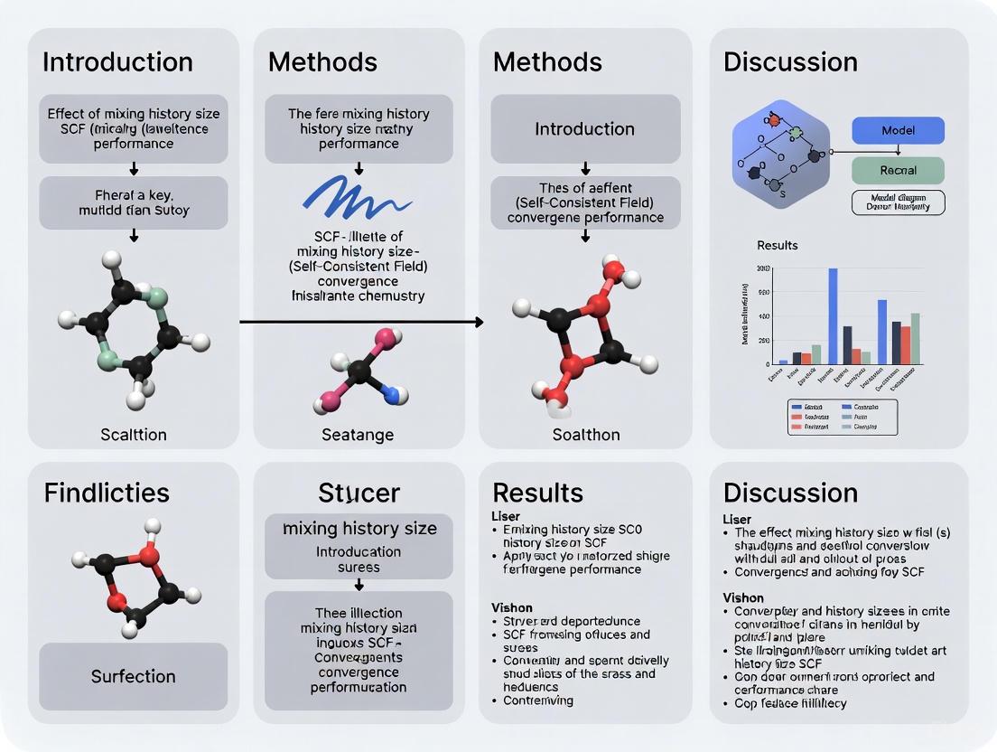 The convergence challenge stems from the iterative nature of SCF methods, where each cycle computes a new electron density from occupied orbitals, which then defines the potential for recalculating orbitals in the subsequent cycle [1]. This recursive process continues until convergence criteria are met, but complex systems with near-degenerate orbitals, metallic characteristics, or charge transfer issues frequently disrupt this process. Within this context, the size of the mixing history—the number of previous Fock matrices and density used in extrapolation procedures—emerges as a critical parameter balancing convergence stability and computational resource demands.
