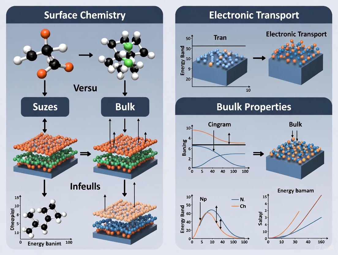 This article provides a comprehensive analysis of how surface chemistry and bulk properties independently and synergistically govern electronic transport in functional materials. Tailored for researchers, scientists, and drug development professionals, it explores fundamental concepts, advanced characterization methodologies, and optimization strategies critical for troubleshooting device performance. By integrating foundational theory with practical applications—spanning thermoelectrics, photovoltaics, organic electronics, and pharmaceutical solid-state materials—the content offers a validated, comparative framework for leveraging surface-bulk interplay to enhance the efficiency, stability, and functionality of next-generation devices and therapeutics.