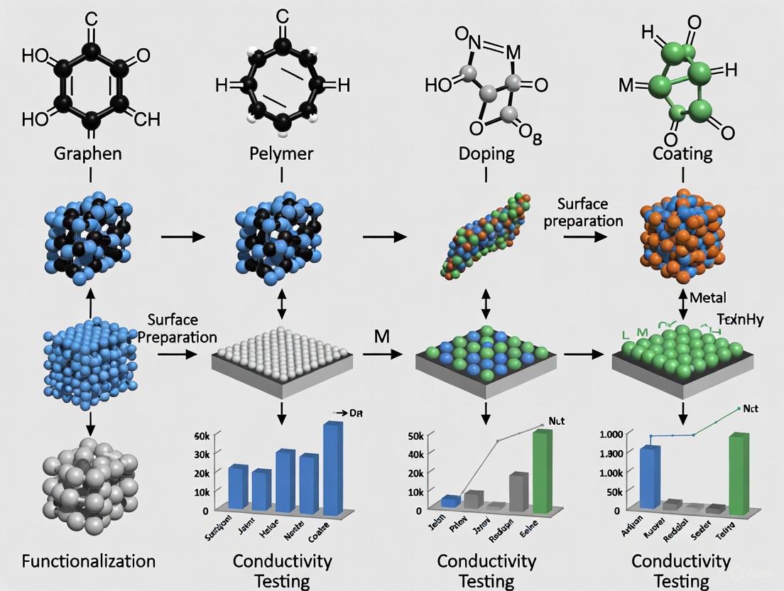 This article provides a comprehensive analysis of surface modification strategies engineered to enhance the electrical conductivity of materials, with a specific focus on applications in drug delivery and biomedical devices. It explores the fundamental principles governing conductivity in materials like conductive polymers and metallic nanoparticles, detailing key methodologies from carbon coating to chemical grafting. The content offers practical guidance for troubleshooting common issues such as stability and biocompatibility, and presents rigorous validation and comparative frameworks to evaluate performance. Aimed at researchers and drug development professionals, this review serves as a strategic resource for selecting and optimizing surface modification techniques to advance next-generation conductive biomaterials.